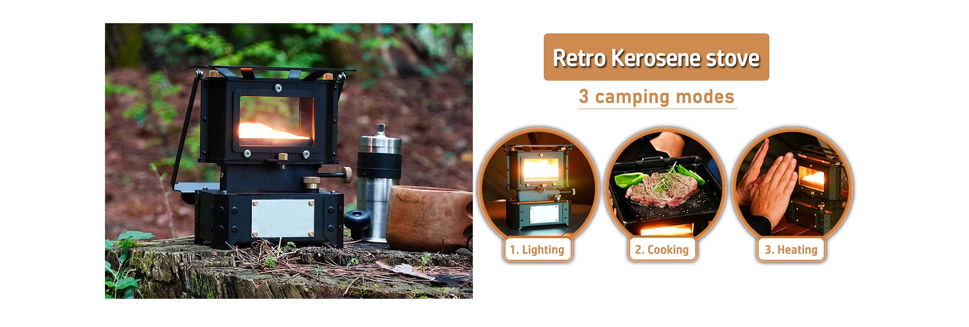 Las lámparas de queroseno para exteriores y las lámparas para acampar se pueden procesar y personalizar. Las estufas de visualización se pueden usar para calefacción e iluminación